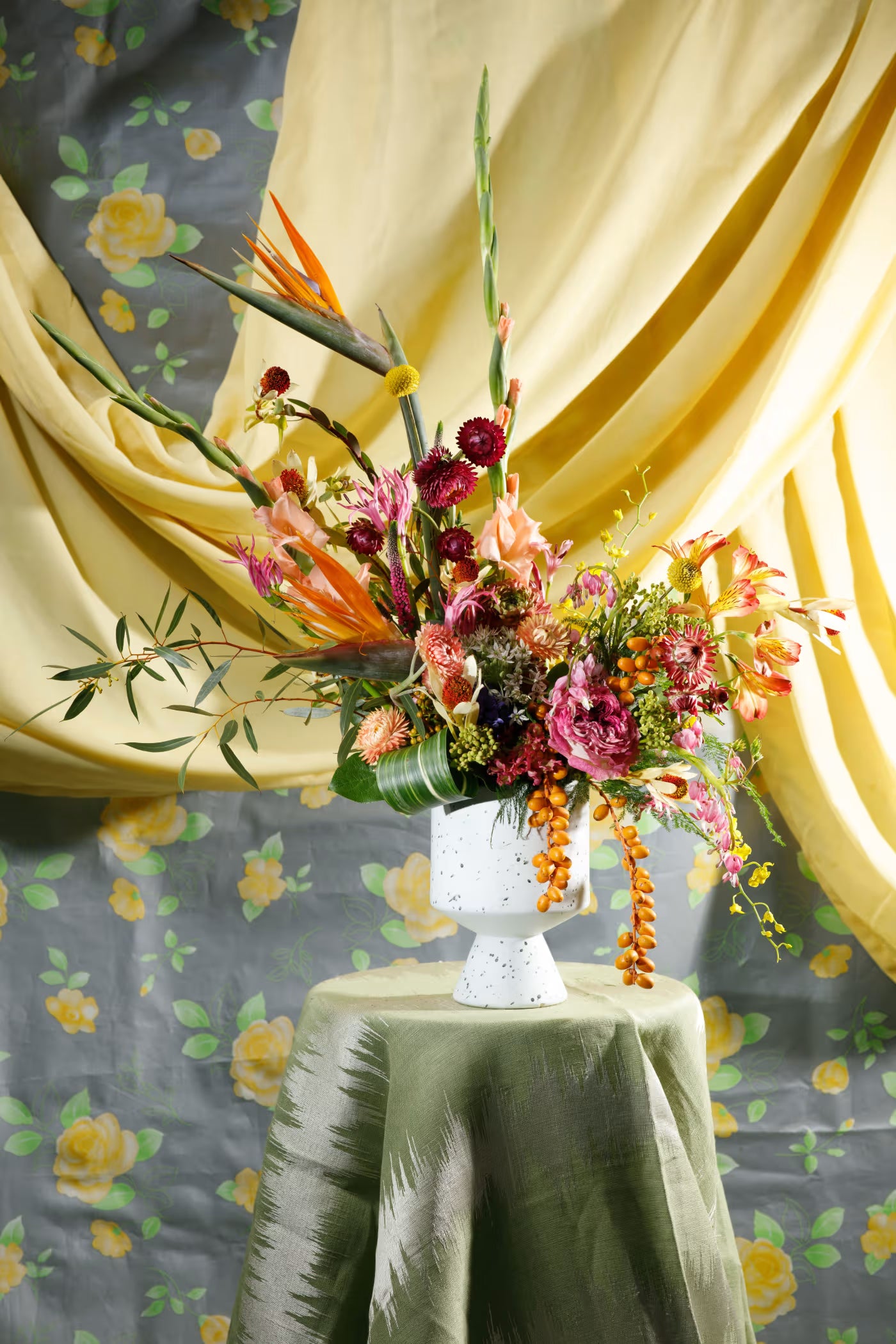 The “Malcolm X” is our extra large, low & lush, floral arrangement created in one of our hand-picked ceramic vases. Picture this carefully created floral piece adorning a side table sitting atop a stack of books, demanding the room! This arrangement is sure to bring a vibe to any NYC apartment, gallery or office space.