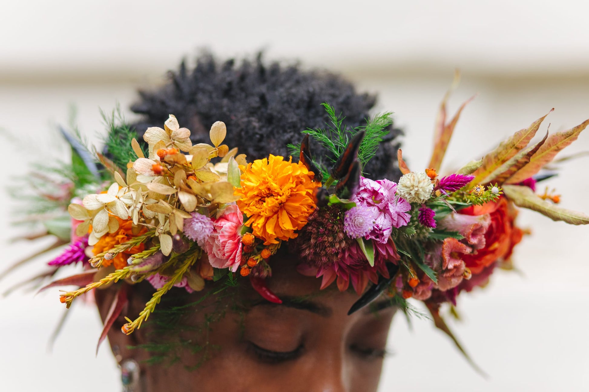 Adorn them with this carefully crafted flower crown that will age beautifully over time once hanged.