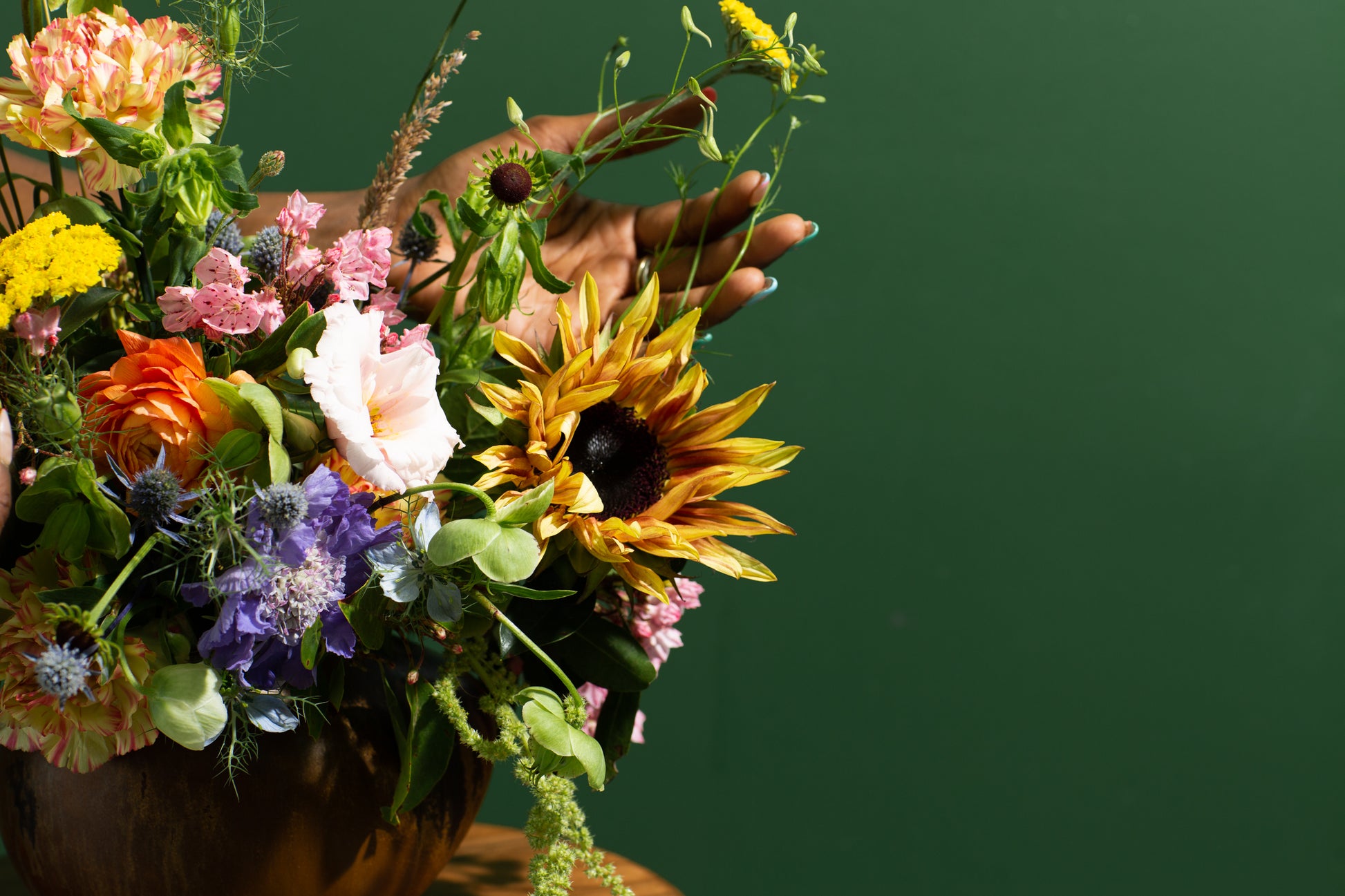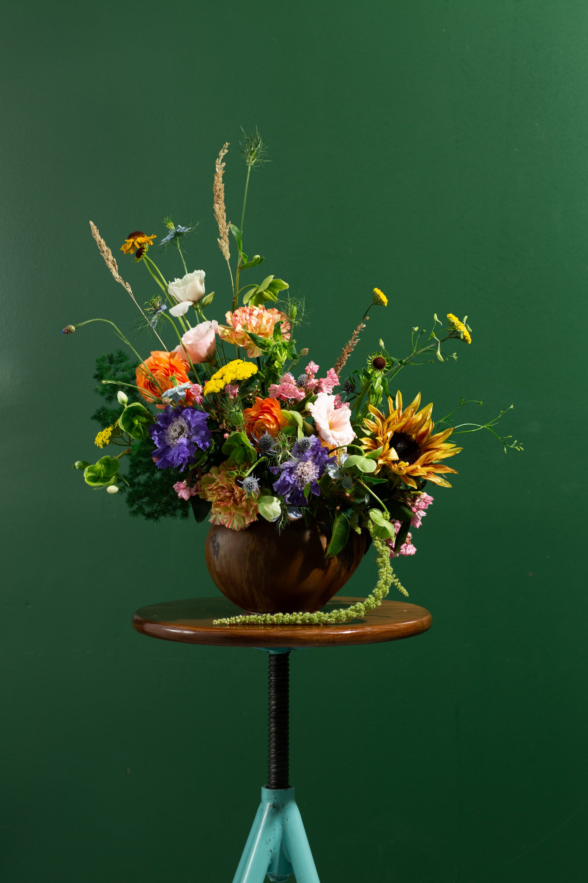 “The Bedford” is our large, low & lush, floral arrangement created in one of our hand-picked vintage vases. You can imagine “The Bedford” on a dinner table or perhaps in an entryway if you're lucky enough to have one in NYC!