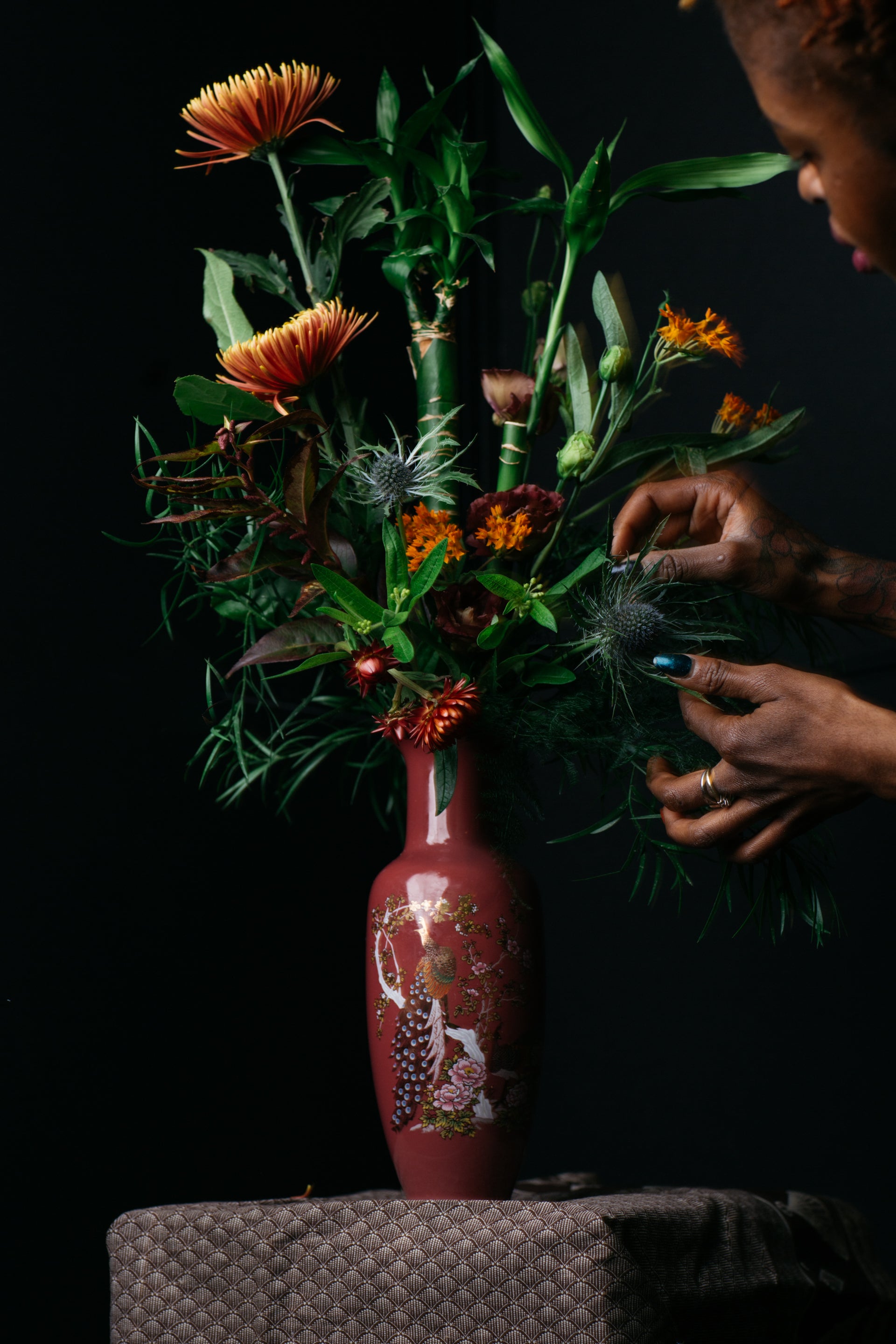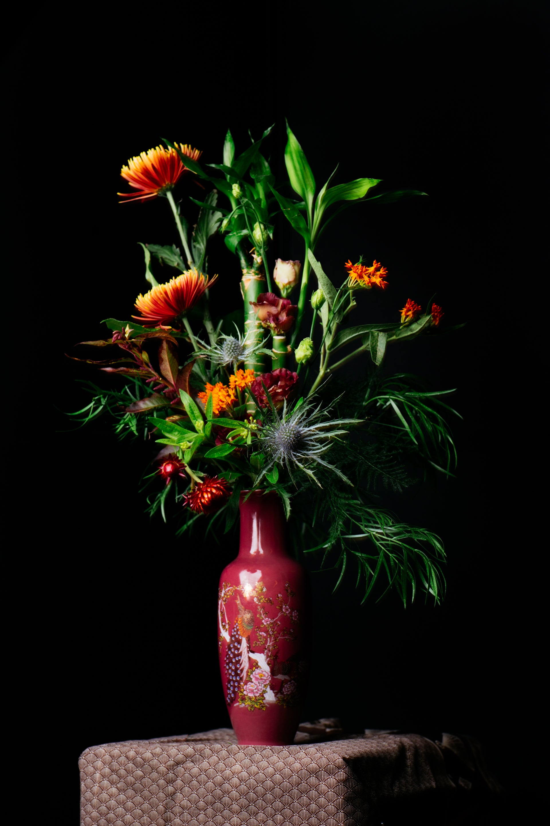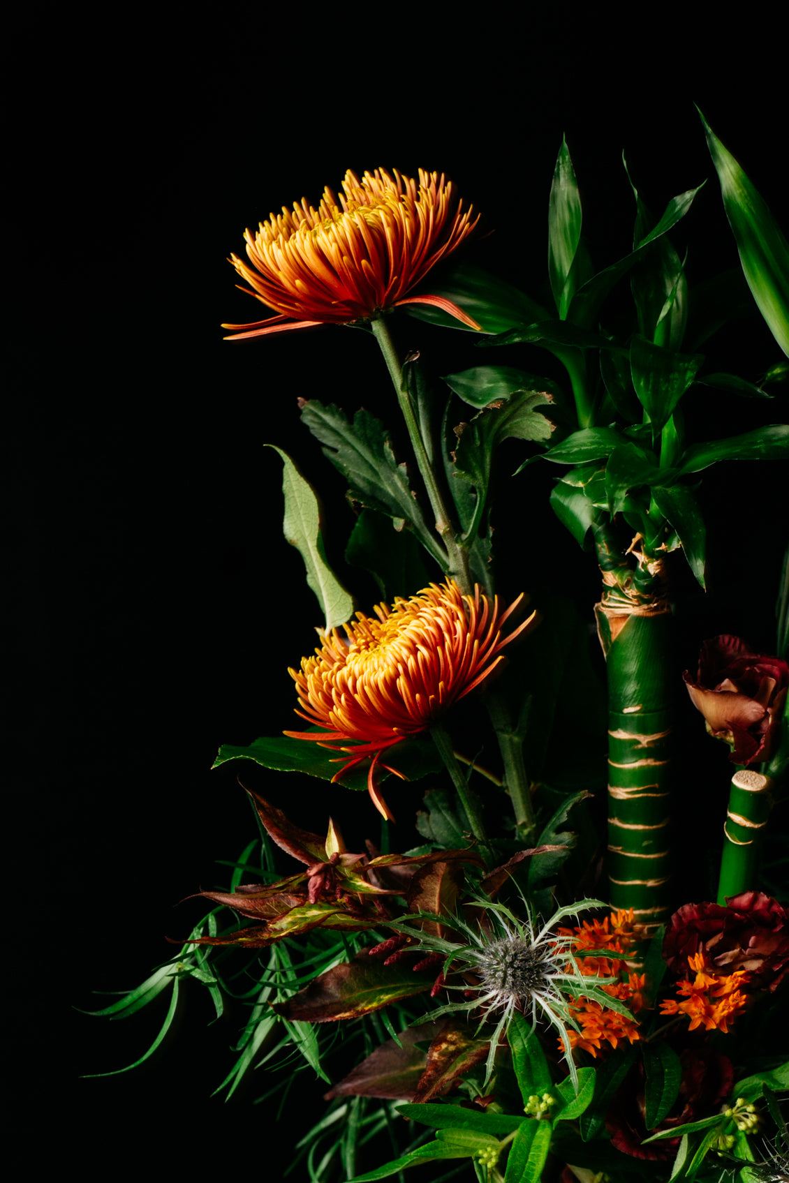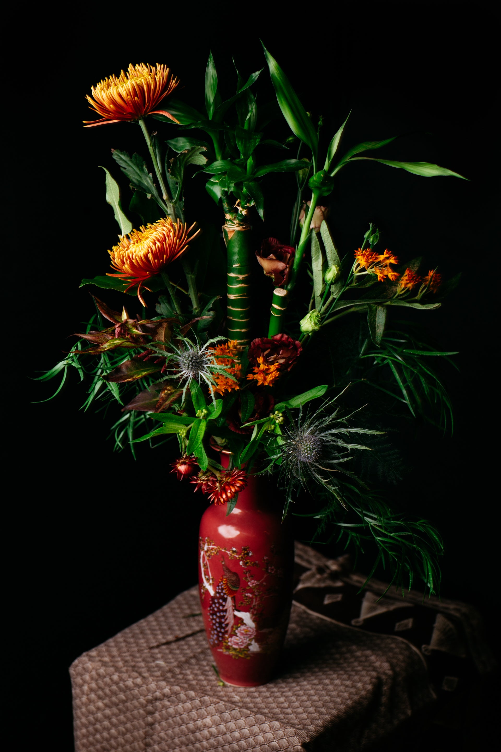"The Saratoga" is our large-sized modern arrangement created in a specialty found vase. By using Lucky Bamboo, Lotus Bamboo and pairing with complimenting blooms this design is sure to be a sculpturally engaging arrangement for any space. Once the flowers have gone through its life cycle enjoy the Lucky & Lotus Bamboo in a beautiful vessel.